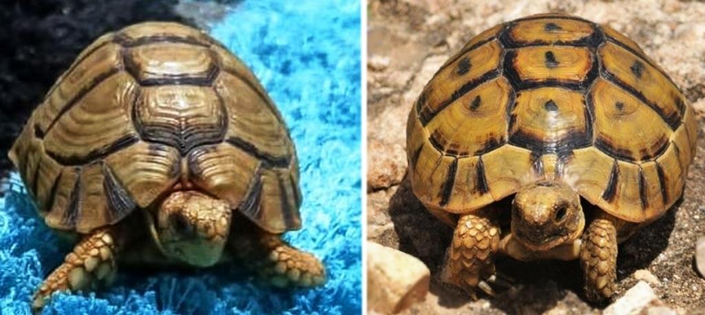صورة صدفة سلحفاة برية علي اليمين وسلحفاة برمائية علي اليسار